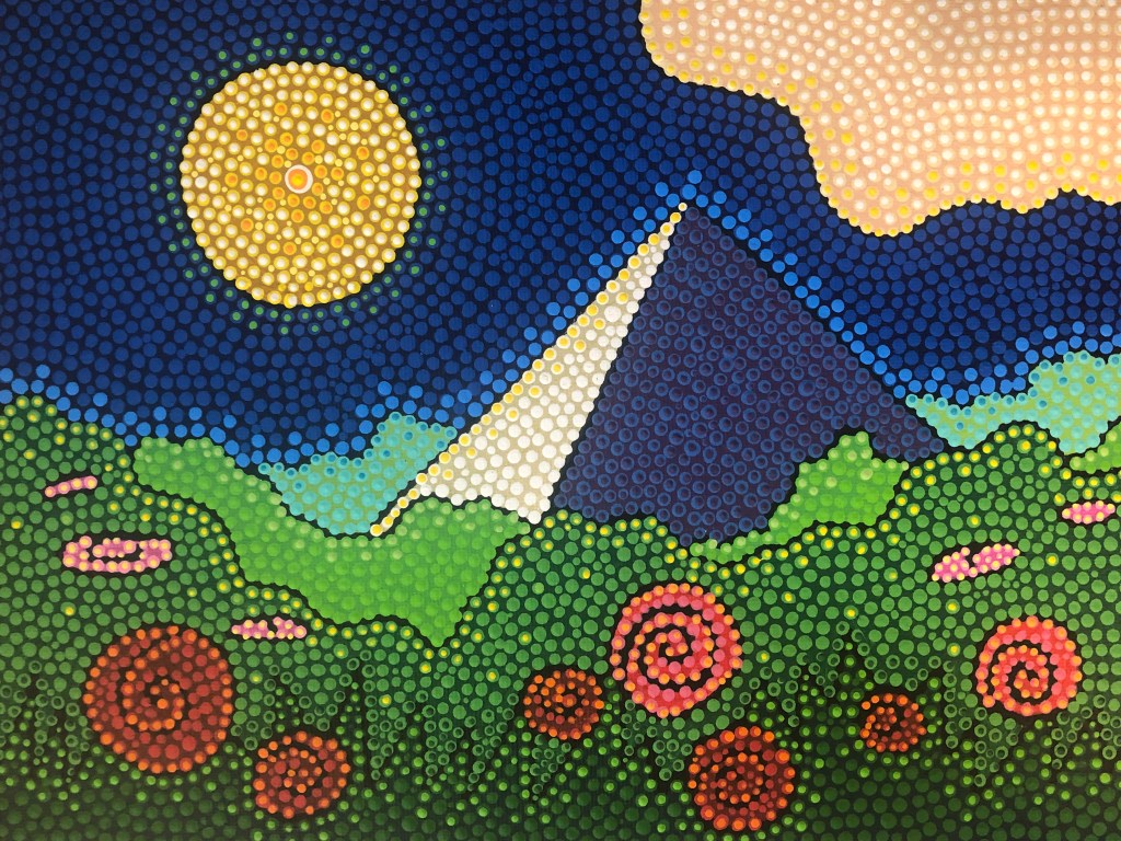 5×7″ Acrylic and acrylic markers on carved linoleum block