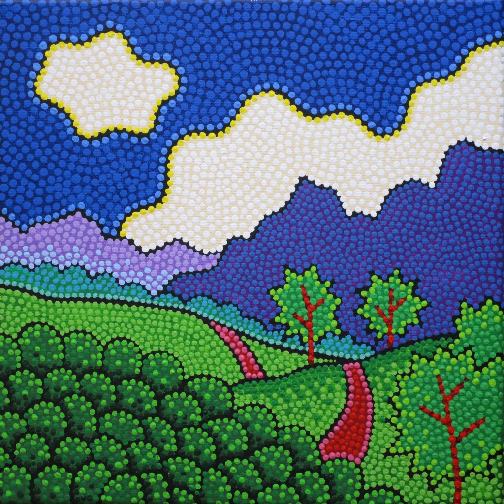 Acrylic paint pen on canvas panel 6×6″