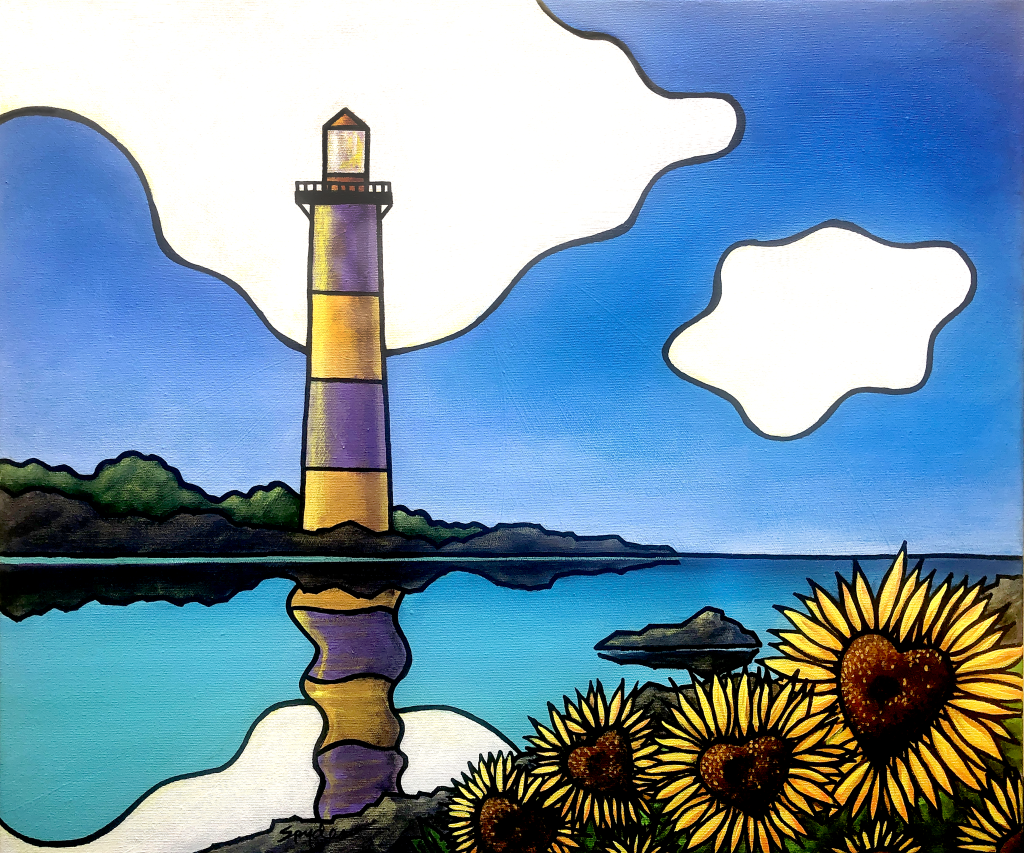 This one’s a commission. The client didn’t have a specific brief, but liked some of the paintings I’ve done with reflections. Also really likes lighthouses, bright floral scenes, sunflowers, and hearts.