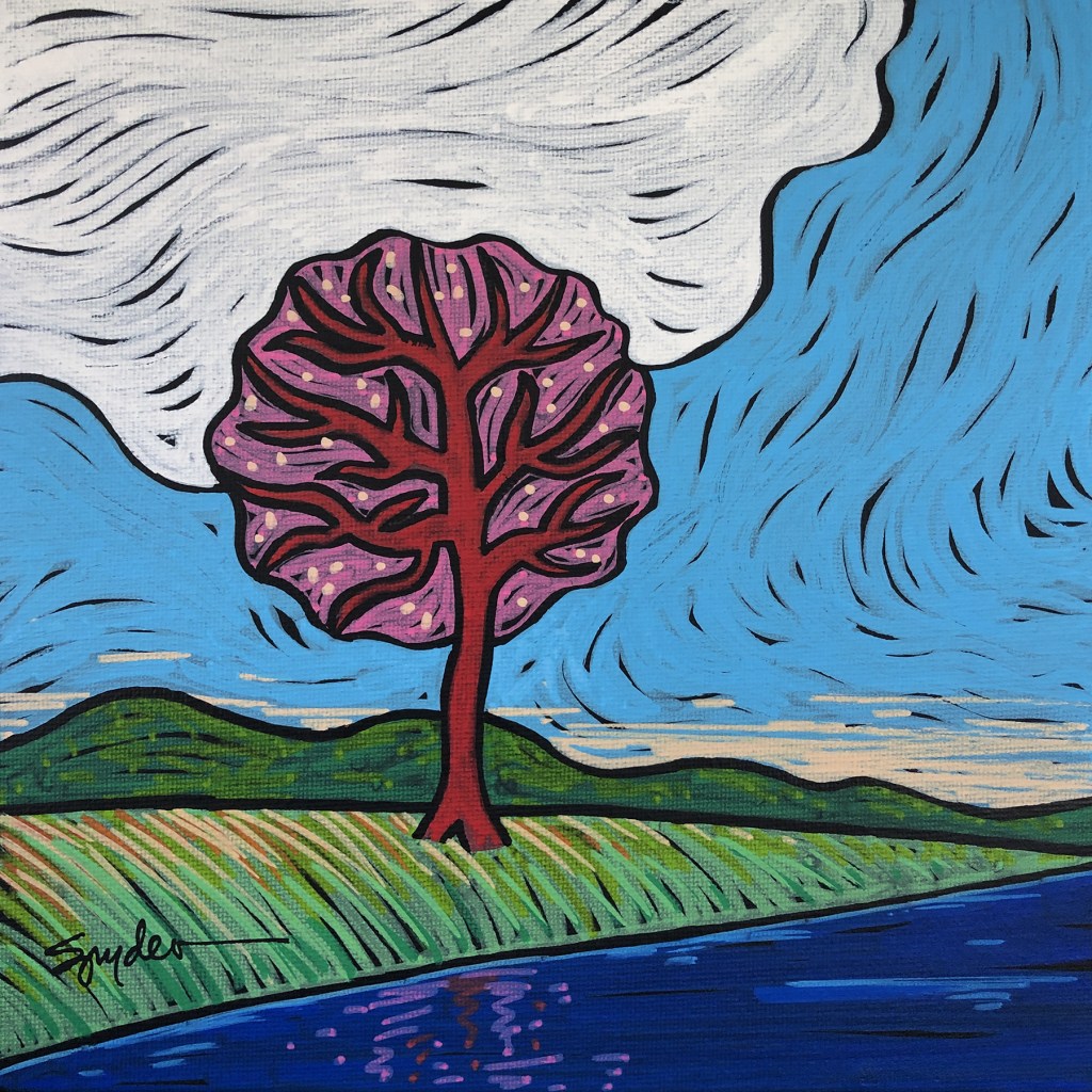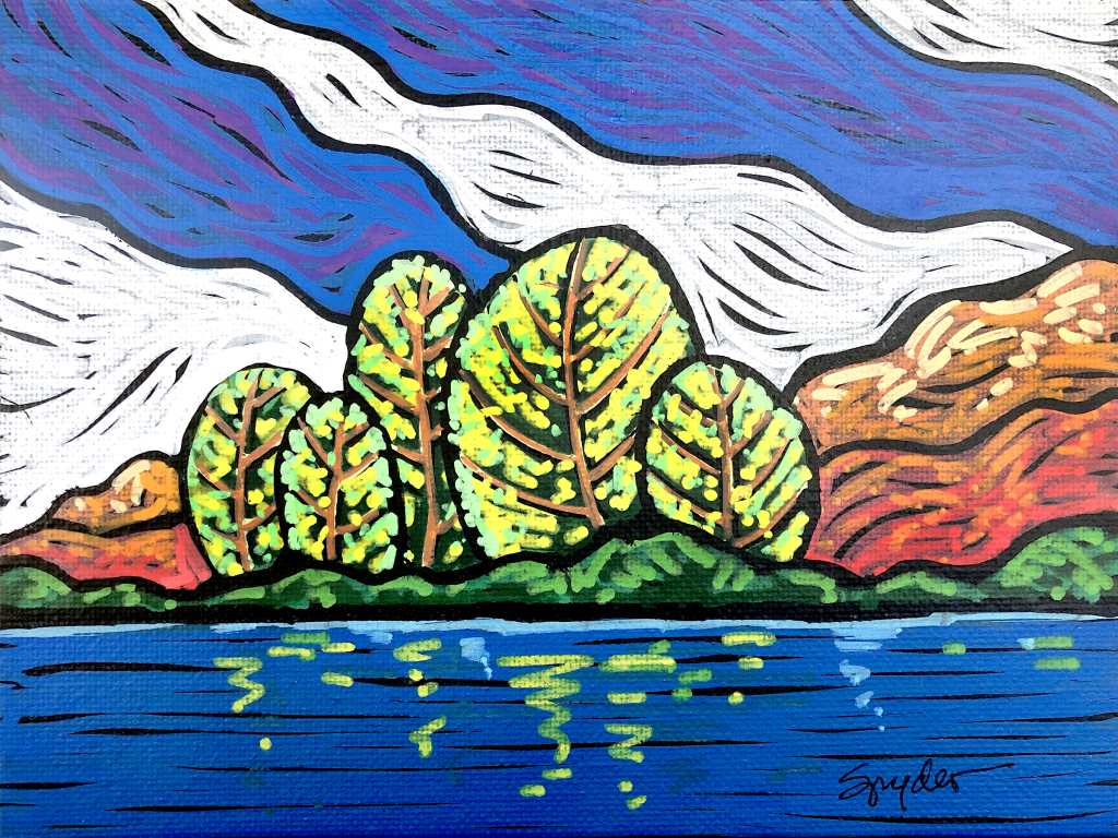 This is mounted linoleum, so it’s a bit heavier than my recent work. The sides are painted black so you can hang it unframed, but if you want it framed, I suggest going to a professional frame shop. It will be shipped with hanging hardware attached. If you do like this painting, please share – because it really helps!