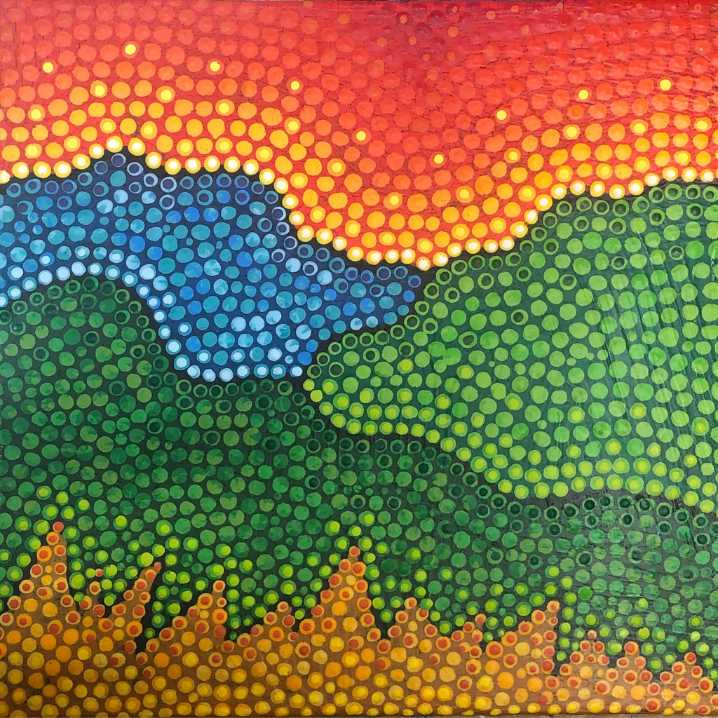 I deliberately made the colors in the dots in some ares more random to add texture. First time I’ve done this. I have a larger one I’ll be posting that’s the second one done that way. This was more of a quick experiment, but I’m pretty happy with the way it turned out.